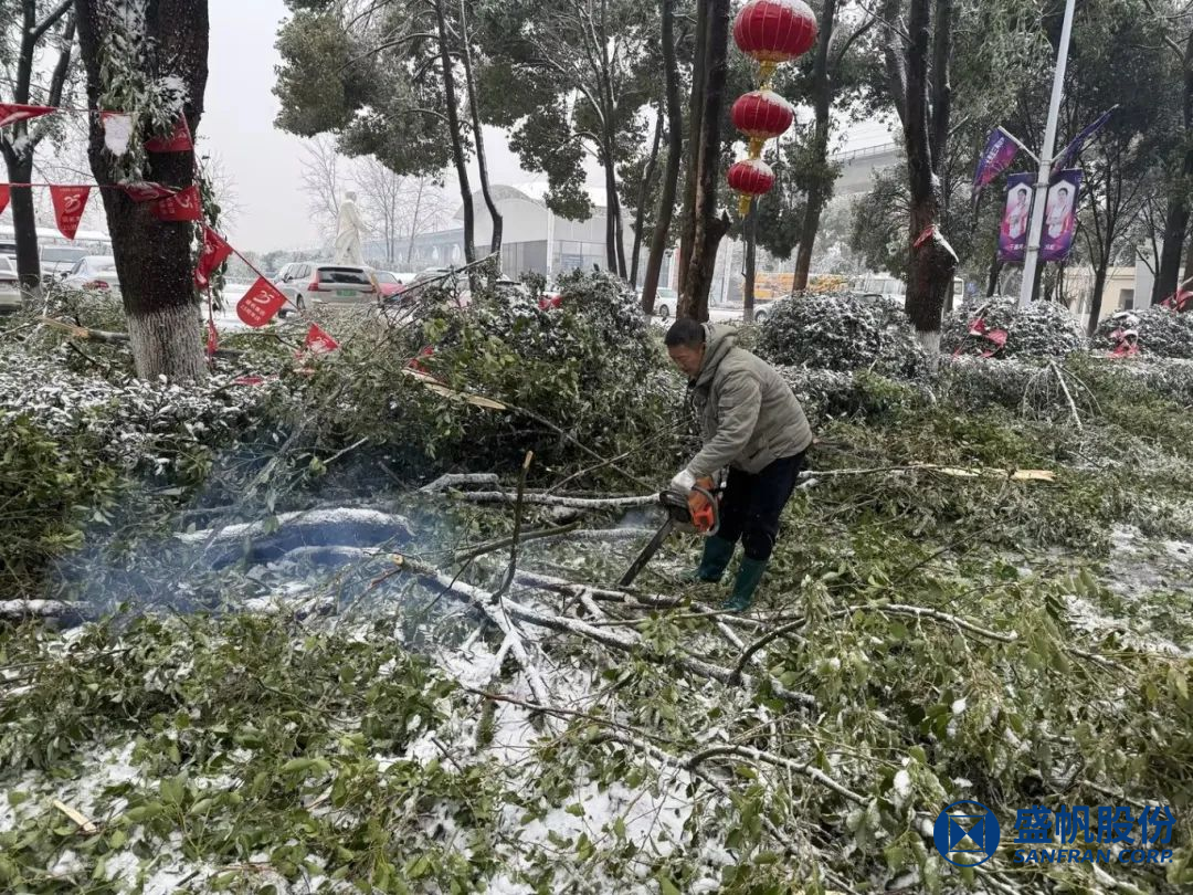 为不留一丝隐患,尽快恢复通行,后勤一线破冰保畅员工立即投入到铲雪、清理断枝的抢修行动中。