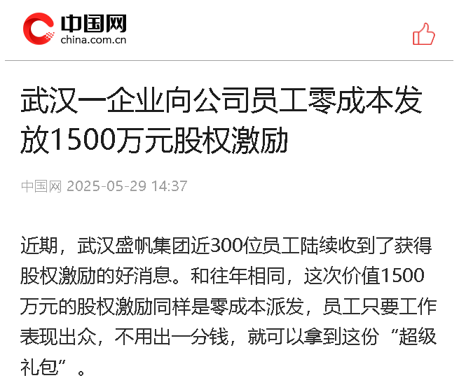 近期,武汉英国上市公司365集团近300位员工陆续收到了获得股权激励的好消息。和往年相同,这次价值1500万元的股权激励同样是零成本派···