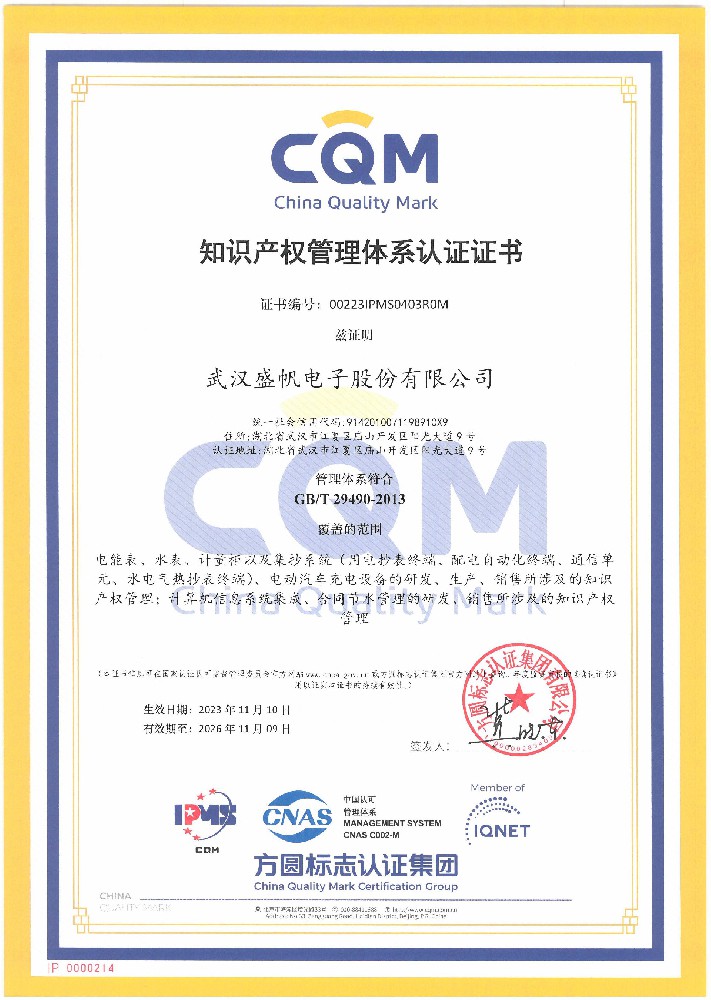 知识产权管理体系认证证书